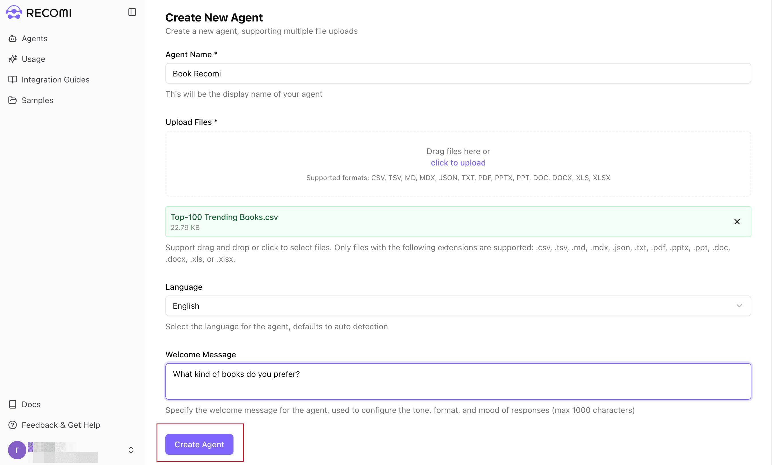 This blog walks you through the procedure of creating and deploying an AI agent for product recommendations with Recomi in just three steps.