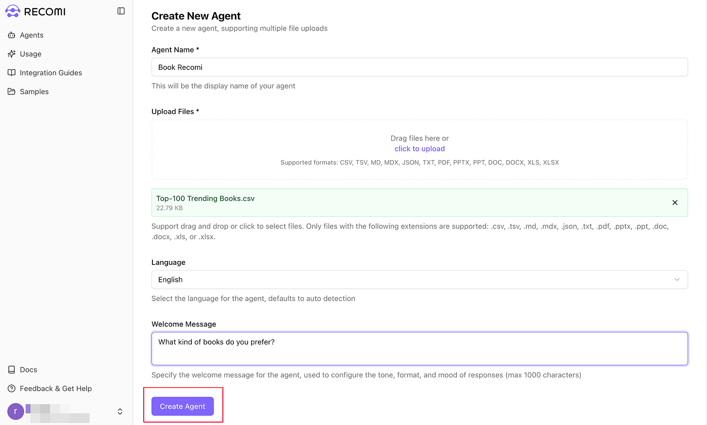 Step 2. Upload Your Files and Set Up Your AI Agent